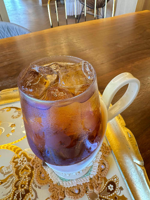 유럽 도자기처럼 엔틱 하며 우아한 느낌으로 디저트를 먹을 수 있었어요.