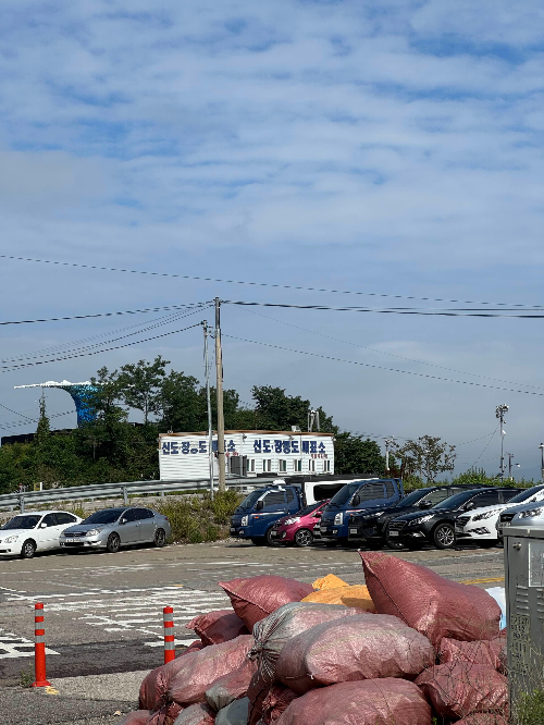 반대편 버스 정류장에서 신시모도 1번 노선 (신도 1리 방향)