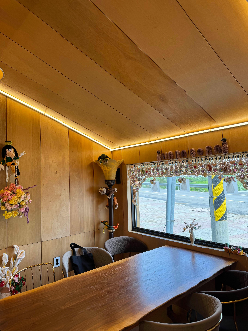 카페 내부 사진은 우드톤 인테리어 이면서