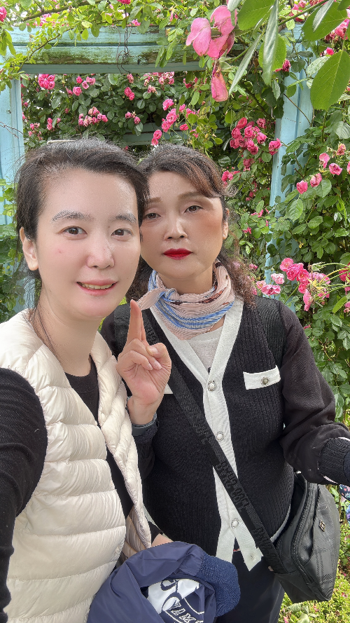 장미 터널에서 엄마랑 같이 셀카 촬영을 하였어요.